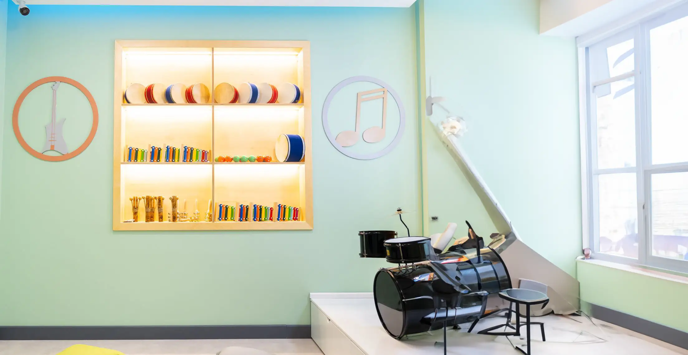 Atölyemizde ritim becerilerinin ve dil gelişiminin desteklendiği müzik etkinlikleri mevcuttur. Hedeflediğimiz davranışlar çocuklarda işitme, dokunma, ses taklidi gibi birçok beceri aynı anda geliştirerek çocuklara müziği sevdirmektir.